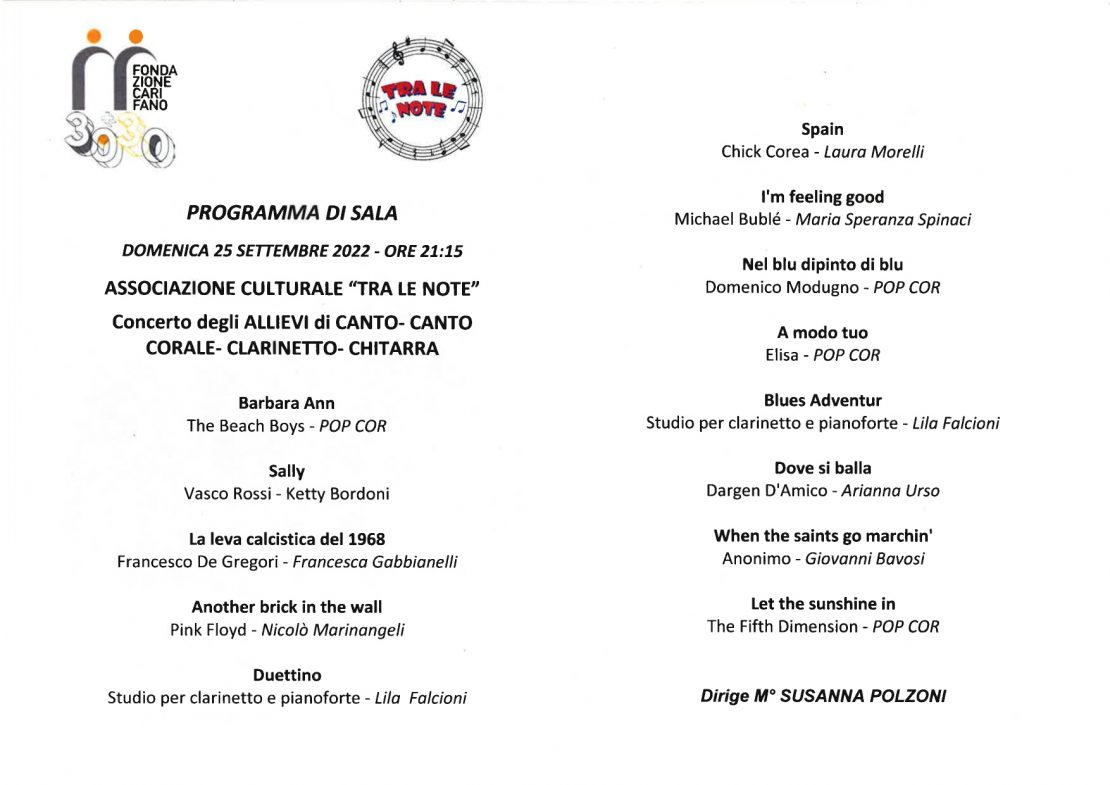 Domenica 25 settembre alle ore 21,15 alla Pinacoteca San Domenico concerto allievi di canto, canto-corale, clarinetto e chitarra dell’Associazione culturale “Tra le note” per la rassegna Domeniche al San Domenico.