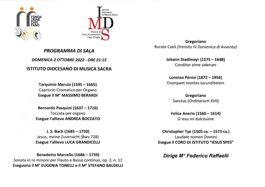 Concerto Istituto diocesano di musica sacra – 2 Ottobre 2022 ore 21:15