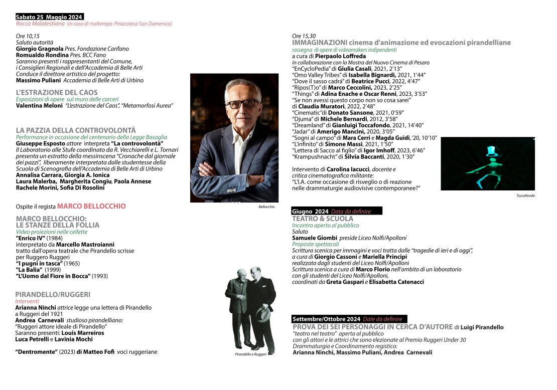 Parte sabato 25 Maggio 2024, alle ore 10.15, alla Rocca Malatestiana di Fano, la 3^ edizione di FANO CON RUGGERI/PIRANDELLO – omaggio a Marco Bellocchio.