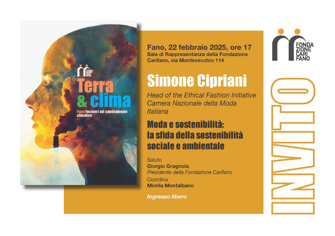 Il convegno sarà tenuto da Simone Cipriani, Head of the Ethical Fashion Initiative della Camera Nazionale della Moda Italiana, esperto di sostenibilità e innovazione nel settore fashion.