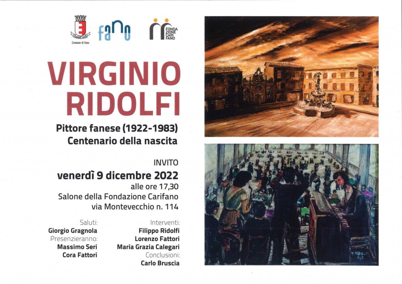 L’omaggio a Virginio Ridolfi nel centenario della nascita (1922-1983), che si terrà venerdì 9 dicembre 2022 alle ore 17,30 nella Sala di Rappresentanza della Fondazione Carifano in via Montevecchio n. 114, rappresenta la riscoperta di un artista fanese che ha seguito una sua personalissima strada attraversando diverse correnti artistiche del Novecento.