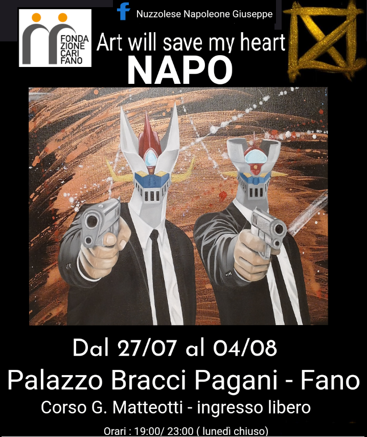In questa mostra dell’artista “Napo” ( all’anagrafe Nuzzolese Giuseppe, classe 1976 artista autodidatta) sono esposte una serie di opere frutto del lavoro degli ultimi 4 anni.