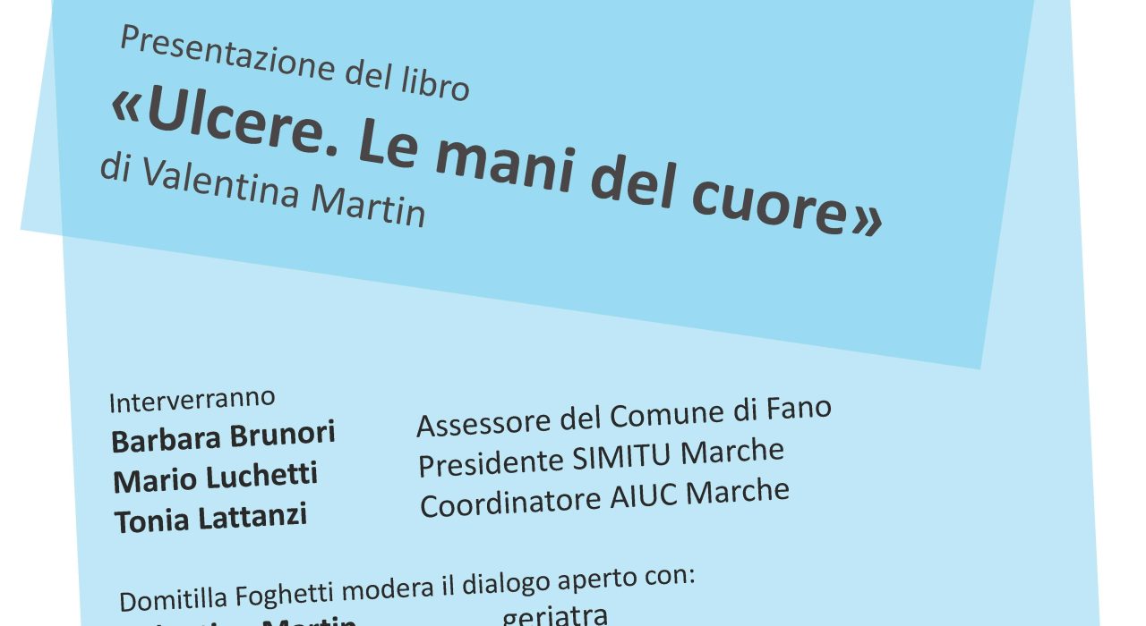 Venerdì 24 novembre alle ore 16.30, presso la Sala di Rappresentanza della Fondazione Cassa di Risparmio di Fano si terrà la presentazione del libro di poesie “Ulcere. Le mani del cuore” scritto da Valentina Martin e dedicato ai pazienti affetti da lesioni cutanee di difficile guarigione.