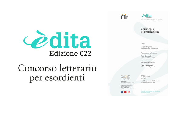 E’ giunta a conclusione la prima edizione di “èdita”, il concorso letterario che la Fondazione Cassa di Risparmio di Fano ha voluto mettere in cantiere nell’anno del suo trentesimo anniversario per coronare il sogno di alcuni dei propri concittadini con la passione per la scrittura.