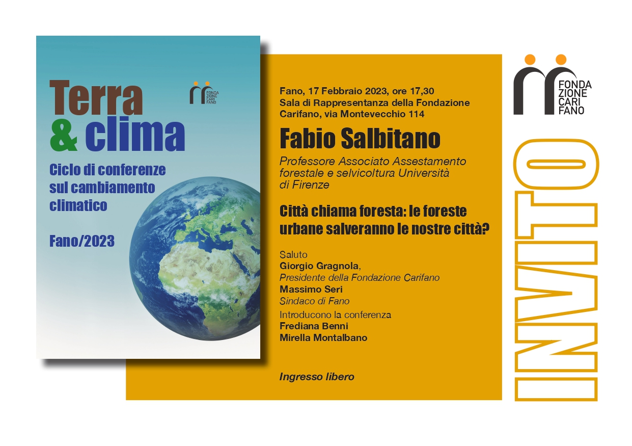 E’ in programma venerdì 17 febbraio alle 17,30 il secondo appuntamento del nuovo ciclo di “Terra e Clima”. Nella Sala di Rappresentanza della Fondazione Carifano sarà ospite il professore Fabio Salbitano, professore associato di Assestamento forestale e selvicoltura all’Università di Firenze. E già dal titolo del convegno “Città chiama foresta: le foreste urbane salveranno le nostre città” si intuisce il focus della discussione.